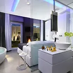 Along with a fitness studio, the property also features a steam room, a solarium, and a Jacuzzi.